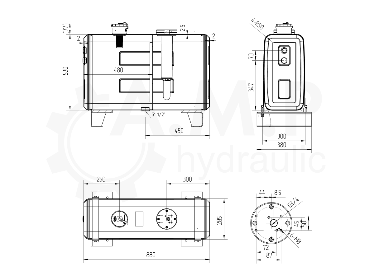 Компактный стальной гидробак 120 л (800×285×530 мм) для монтажа за кабиной. Полная комплектация с кронштейнами и фильтрами. Антикоррозийное покрытие, усиленная конструкция. Гарантия 12 мес. Доставка по РФ.