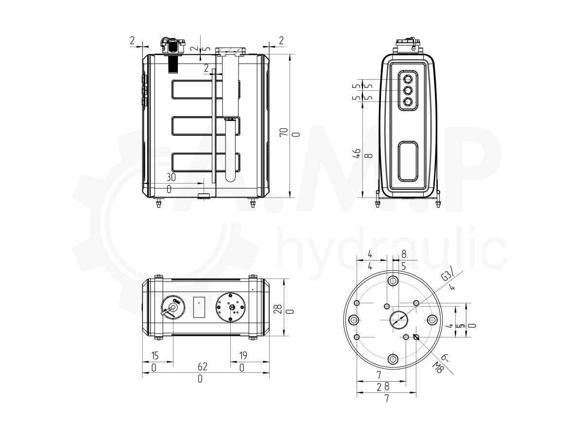 Гидробак YXRF02RUS110L3C253 - оптимальное решение для техники с ограниченным монтажным пространством. Преимущества: