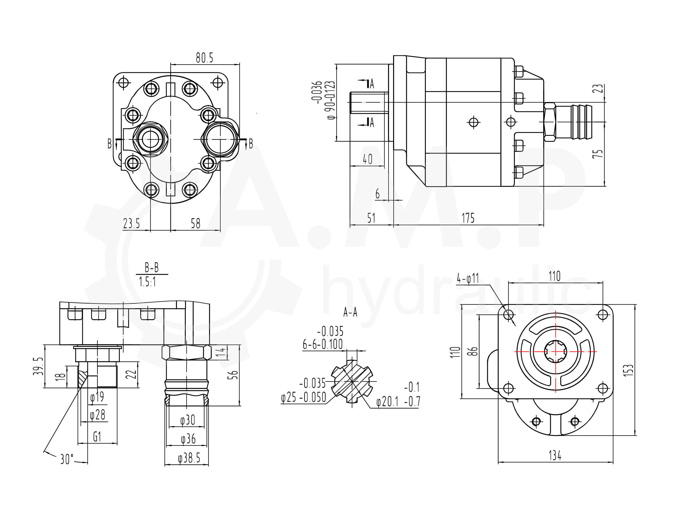 Высокопроизводительный шестерённый насос CBTxF580BLH60 от A.M.P. hydraulic с рабочим давлением 200 бар (макс. 250 бар). Рабочий объём 80 см³/об, правое вращение, крепление 6х20х25. Оптимален для различных гидросистем. Вход 1½", выход 1".