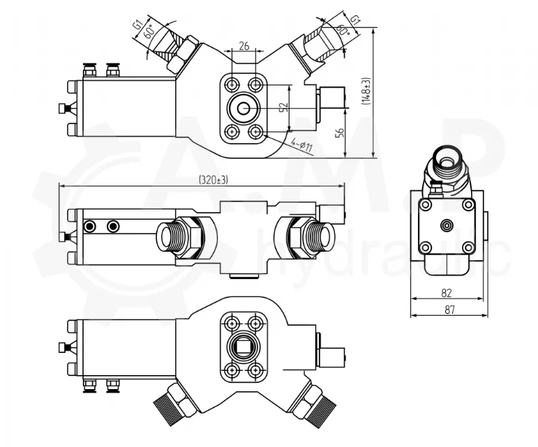 Гидрораспределитель BHFBQ20BB производства A.M.P. hydraulic - профессиональное решение для систем гидрофикации самосвалов с креплением на гидроцилиндр.