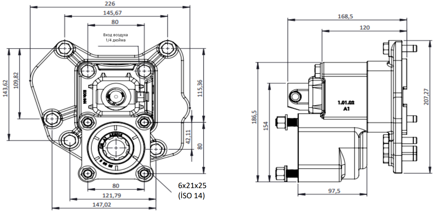 Коробка отбора мощности CTM095A1 от A.M.P. hydraulic предназначена для установки на коммерческую технику MERCEDES с коробками передач G100 и G140. Обеспечивает эффективную передачу мощности от двигателя к дополнительному оборудованию (гидронасосы и др.). Ключевые преимущества: • Надёжная конструкция для тяжёлых условий эксплуатации • Простота монтажа и обслуживания • Мощность передачи - 28 кВт (38 л.с.) • Высокий крутящий момент 350 Н·м • Усиленная защита от перегрузок • Гарантия 12 месяцев Сфера применения: • Грузовые автомобили MERCEDES G100, G140 • Спецтехника с гидравлическим оборудованием • Коммунальная и строительная техника Наши преимущества: • 18 лет опыта на рынке гидравлики • Быстрая доставка по всей России • Профессиональная установка за 1 день