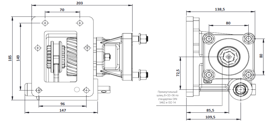 Коробка отбора мощности CTM181BC1 для техники MITSUBISHI (крепление ISO). Передает крутящий момент 200 Н·м (16 кВт при 1000 об/мин), правое вращение. Совместима с КПП MO36S5, MO36S6. Прочный корпус, простой монтаж. Гарантия 12 месяцев.