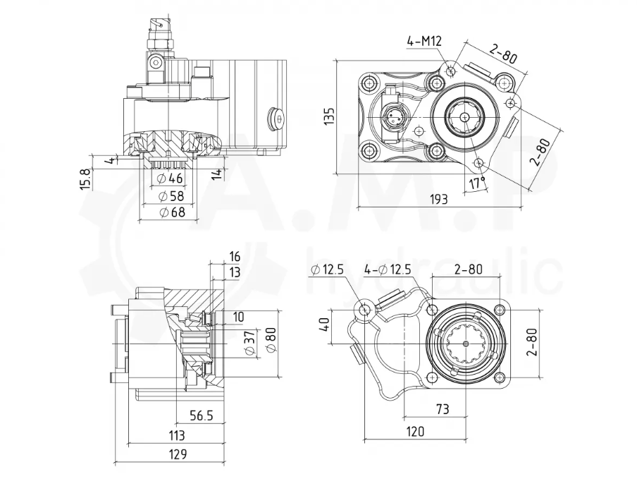 A.M.P hydraulic LKF65XH8 - профессиональное решение для спецтехники различных марок. Обеспечивает надежную передачу мощности к дополнительному оборудованию.